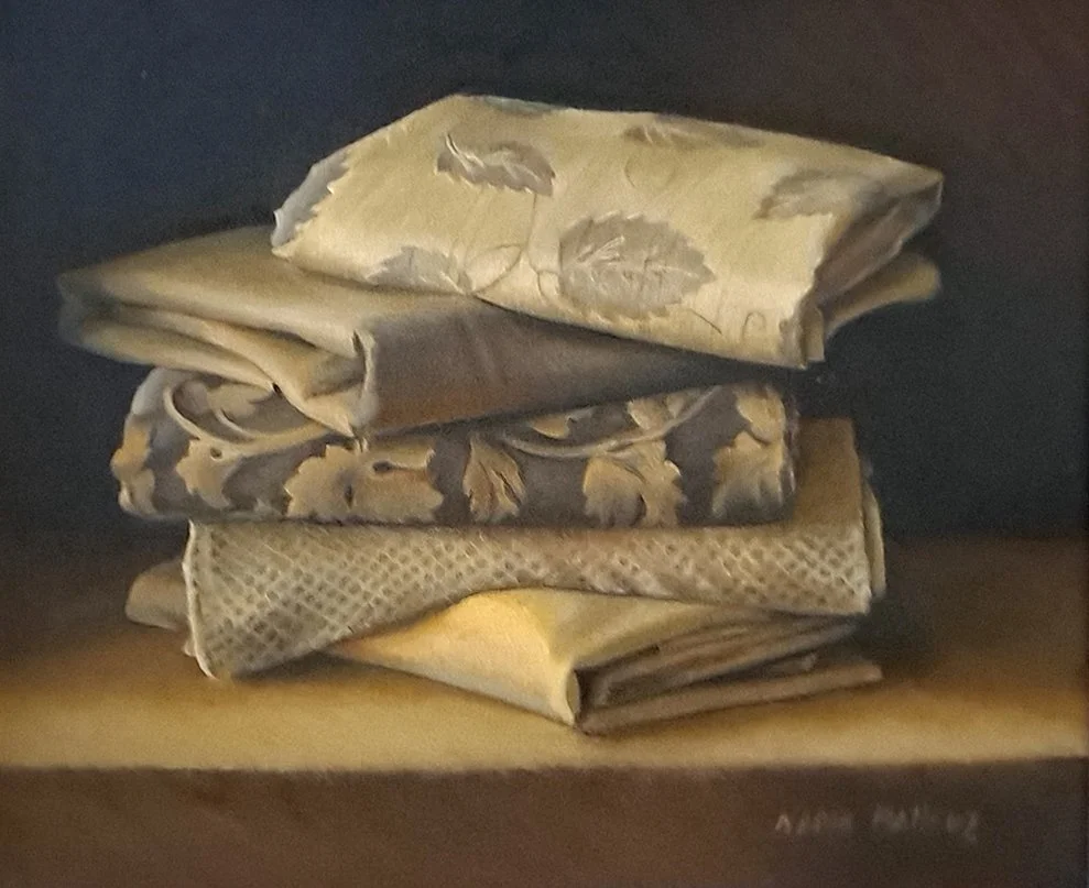 View fullsize Hanging Cloth Study, Oil on Belgian linen, 32 x 56" - Handmade gold leaf frame